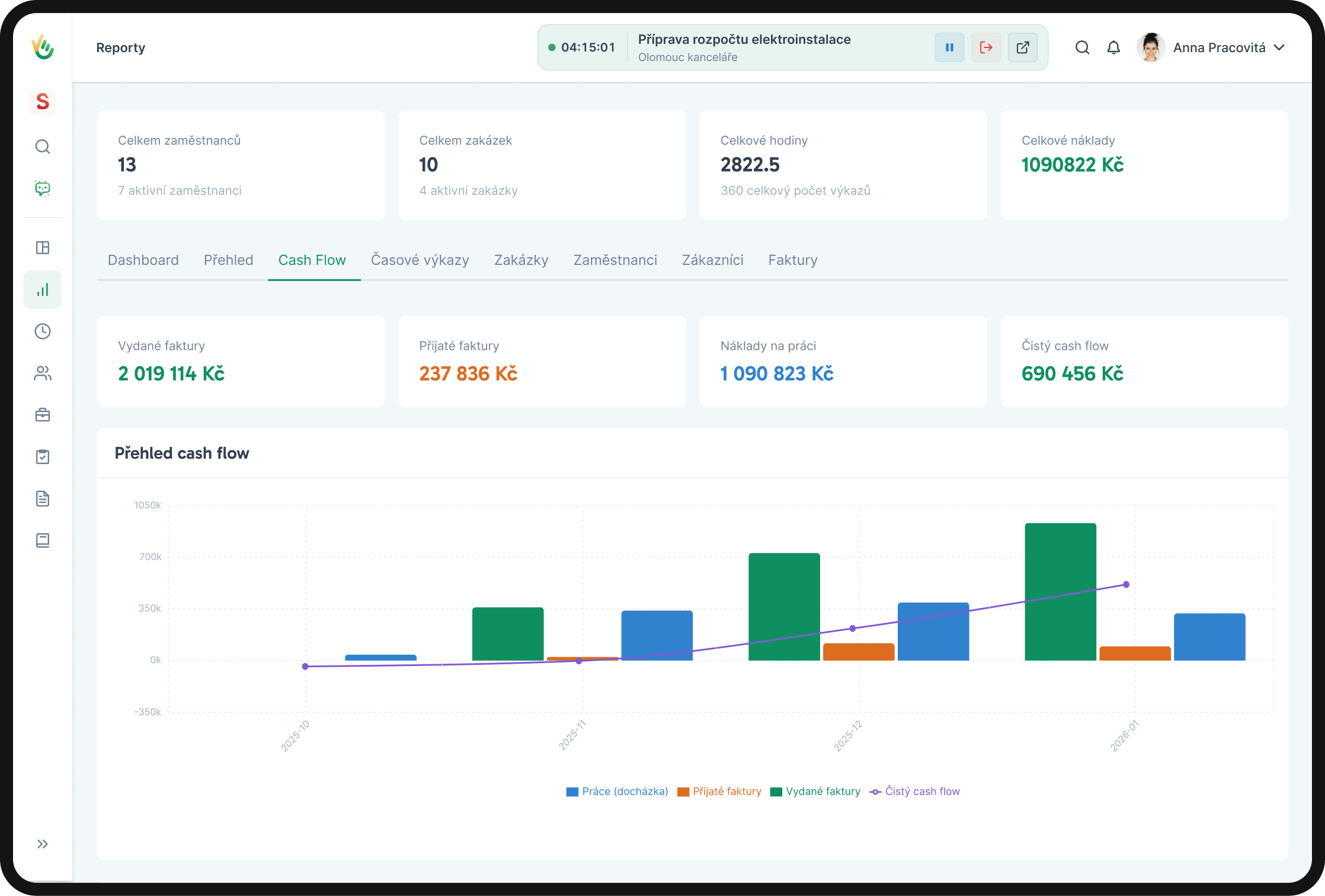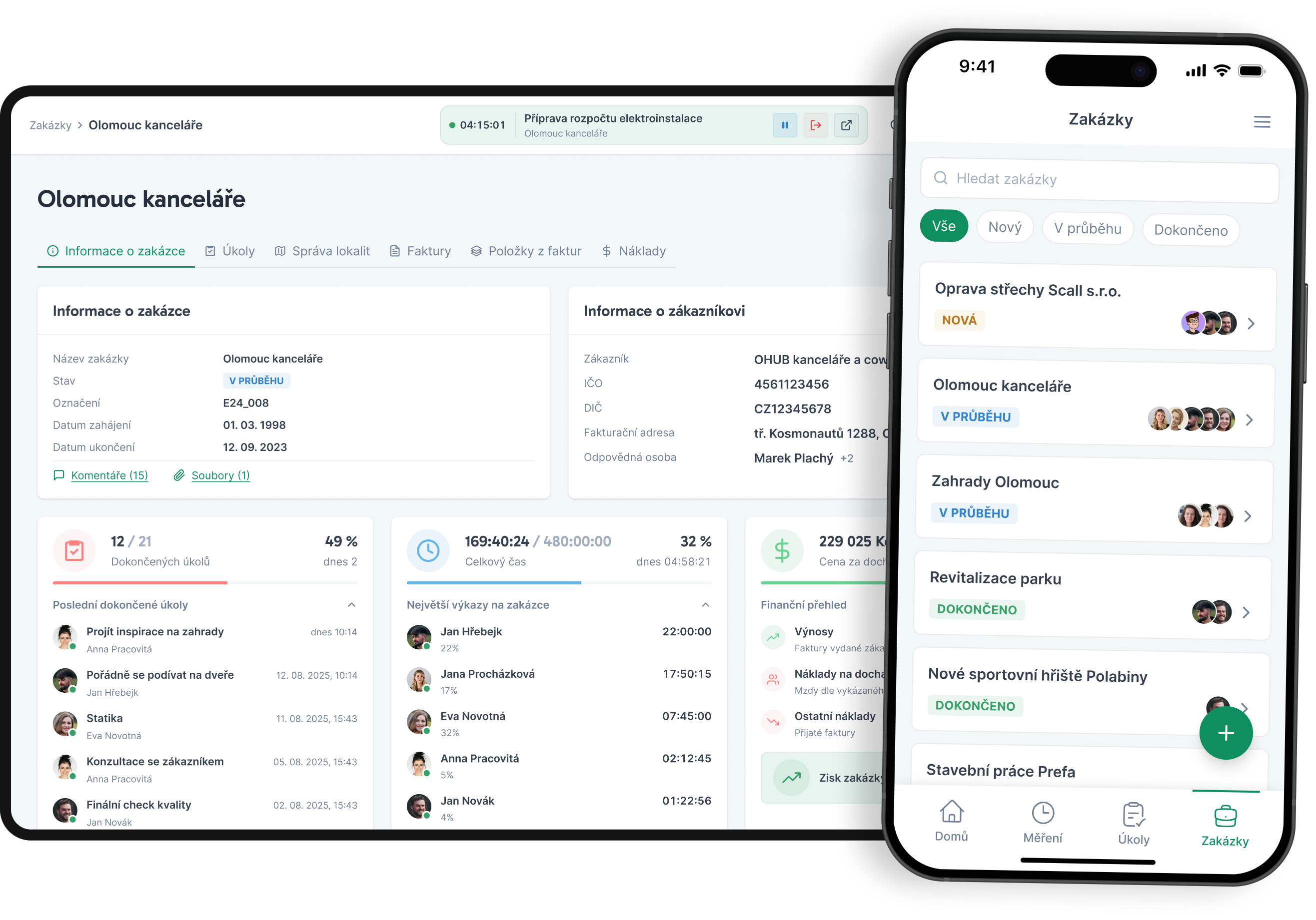 Zakázky, náklady, docházka a další – vše přehledně a jednoduše na jednom místě.